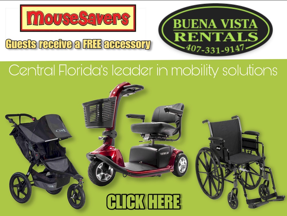 - Use this link or click the image below for the MouseSavers special offer: Reserve an ECV or wheelchair with Buena Vista Rentals!